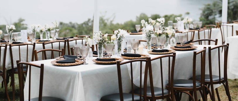 Os descartáveis foram uma delicadeza à parte. Queríamos opções elegantes e ecológicas, e a Qualifest trouxe descartáveis de madeira e folha de palmeira, que deram um ar ainda mais rústico e sofisticado ao evento.